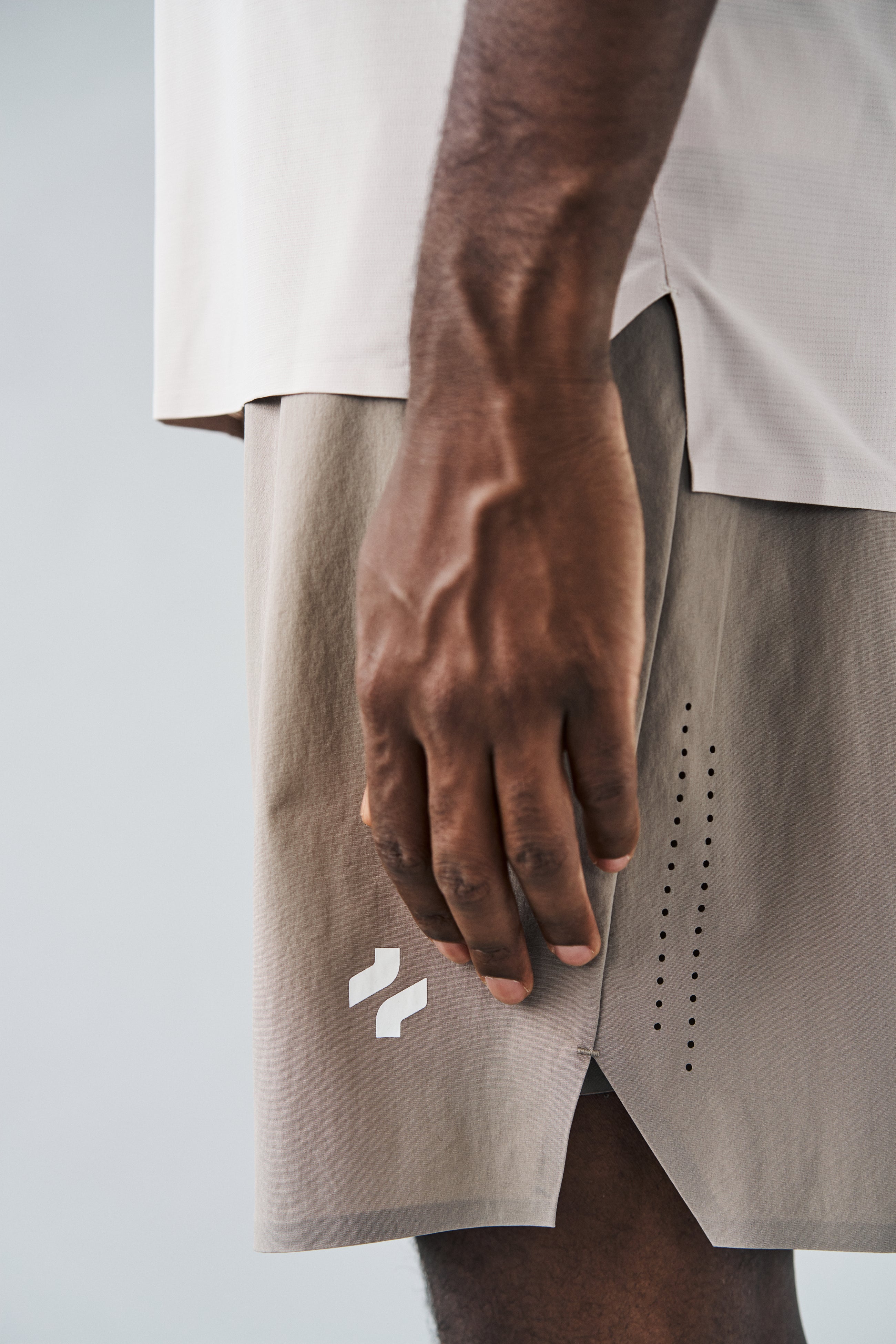 Men’s Frame Dual is built on a layered system: a lightweight woven outer paired with a discreet inner short. The outer runs longer in length - cut for stride, ventilated with laser perforation, and finished with a split hem. Beneath, the integrated inner sits shorter than the shell, designed to stay unseen while adding structure and support. A bonded rear pocket follows the geometry of the Frame series, refining utility while keeping the silhouette clean. Engineered for extended motion - equally suited to trail, training or daily rhythm.